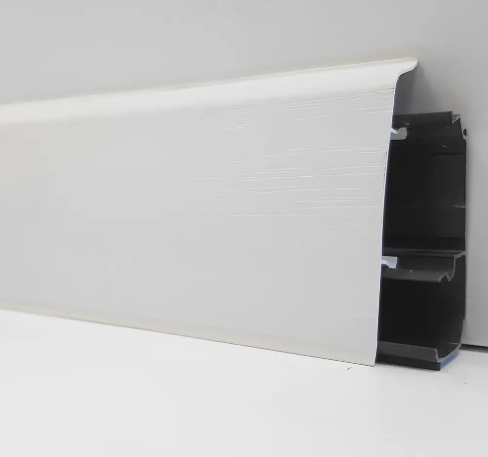 Плинтус напольный ПВХ Декор Пласт 67 мм / Dekor Plast LL001 Белый с тиснением